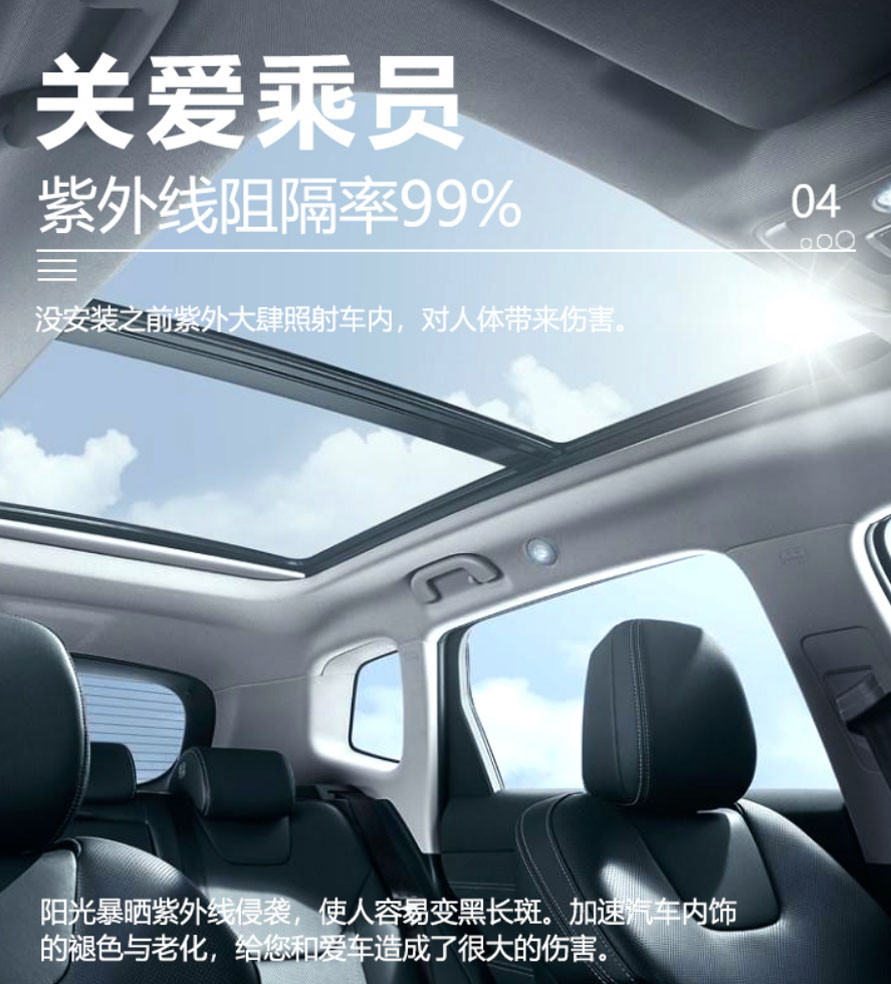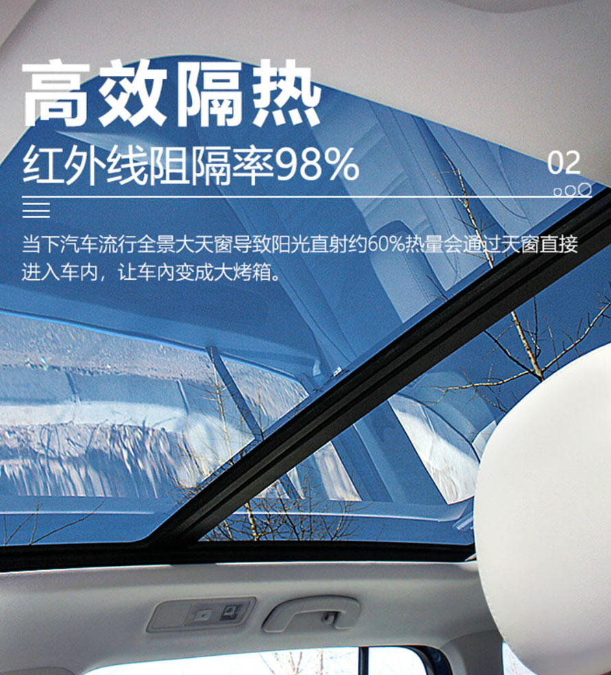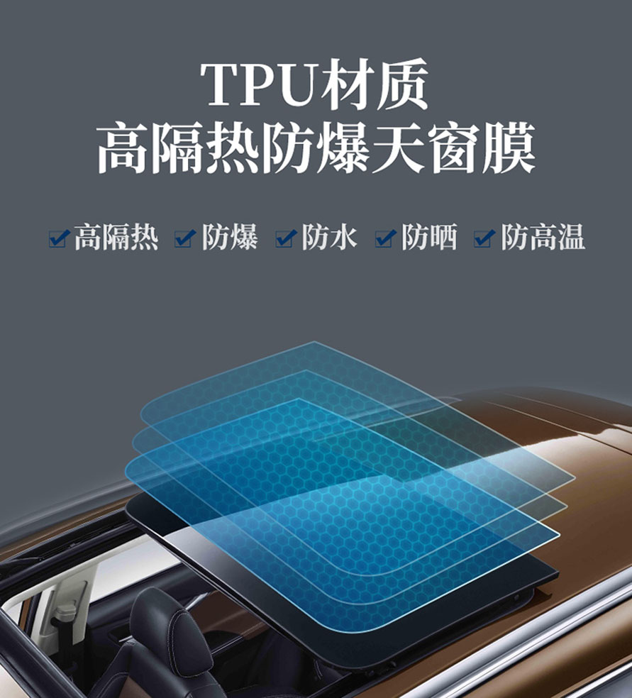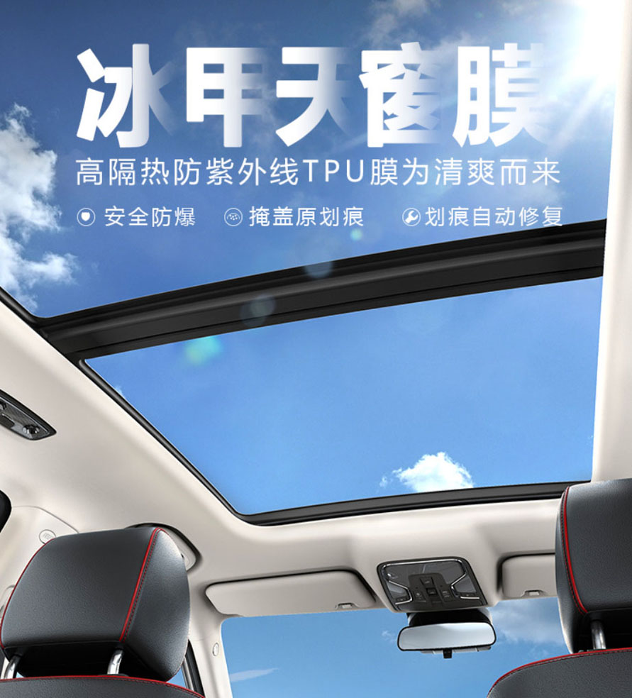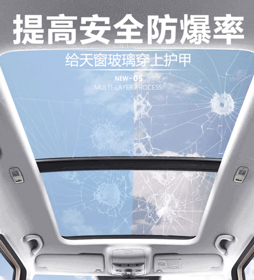 兹梅尔天窗冰甲,8.5mil,5倍于普通隔热膜的厚度,给天窗玻璃穿上护甲。